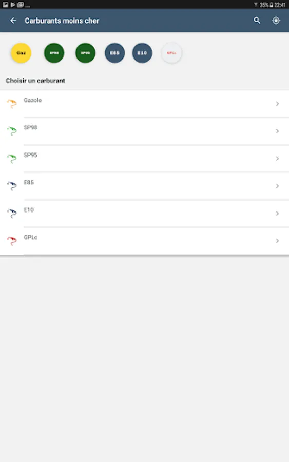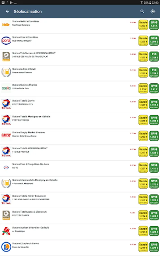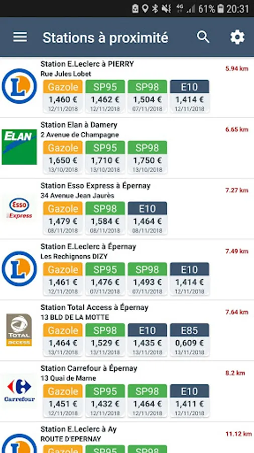 It is possible to select the fuels and distributors for which you wish to obtain information. You can also sort by distance or price the stations to display. The maximum search radius can also be configured in the options.