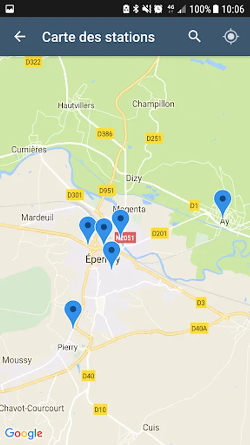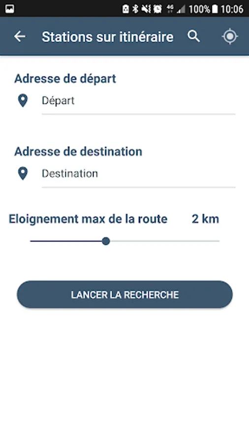 It is also possible to find available stations according to a route. All you have to do is fill in the start address and the destination address. The application will then display all the stations on the route taken.
