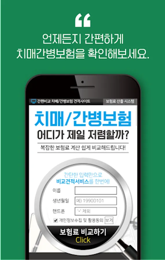 For various insurance products of different insurance companies, try to compare the price of dementia insurance with different dementia insurance, and the information on subscription and coverage with complicated and difficult insurance terms through the application.