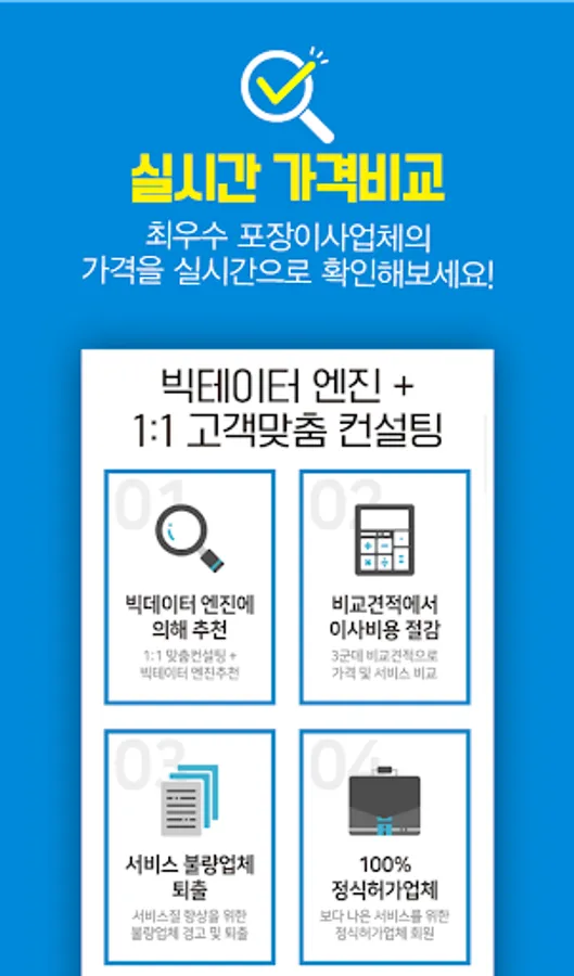 The packaging moving price comparison service combines only the advantages of price comparison and quotation service to provide information of the company so that moving prices and services can be easily compared to customers who want to move.