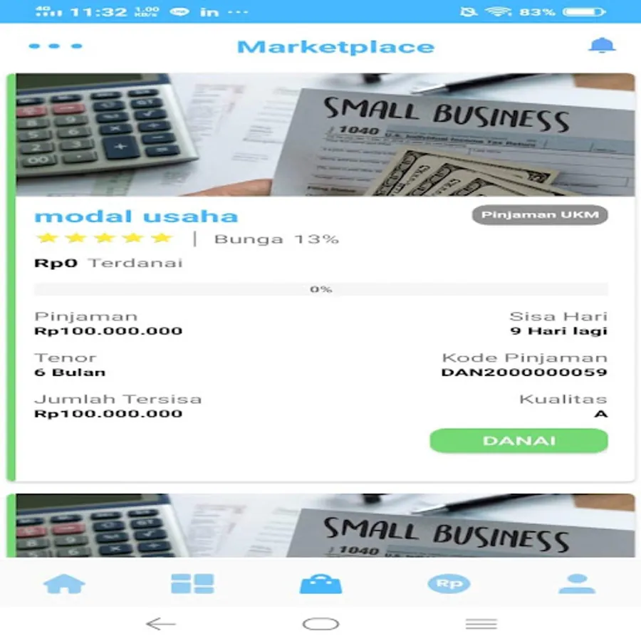 Danon Mobile Apps new release for investor. Capitalization P2P base lending. Refunds vary and are attractive, ranging from 14% -30% pa. Funding can be carried out starting from Rp. 100,000, - Security and funding risks are measured properly, in the presence of; Placement of Investor Fund Accounts in Banks, Credit Scoring, Borrower Guarantees, KYC and digital signatures. Has been registered and supervised by OJK and AFPI