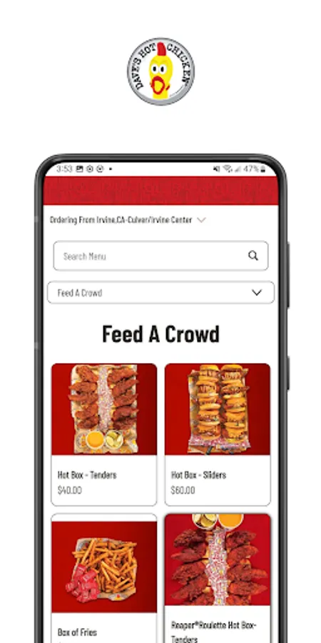 + A personalized menu - made just for you! With the Dave’s Hot Chicken® app you can easily re-order your favorites & recent orders.