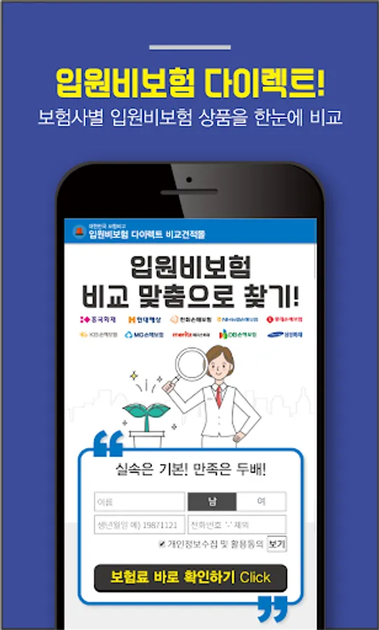 It takes too much time and effort to compare insurance products with many insurance companies by insurance company. However, after downloading this application, simply enter the information and you can design the product of the insurance company you want to customize. You can also check the insurance conditions and coverage easily with mobile.