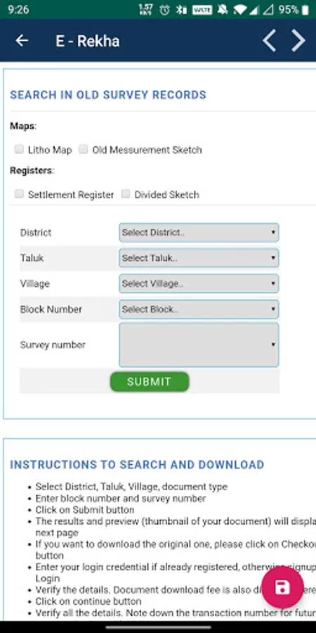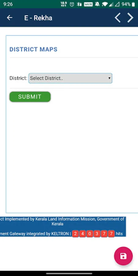 The Government of Kerala has launched the portal http://erekha.kerala.gov.in/. Through the Kerala Portal, the citizens of Kerala can search their land records like Jamabandi, village map, land records, etc. This app has some other features like Village map and related land information. After the see the record you can save those record as pdf with the help of print manager that is used here.