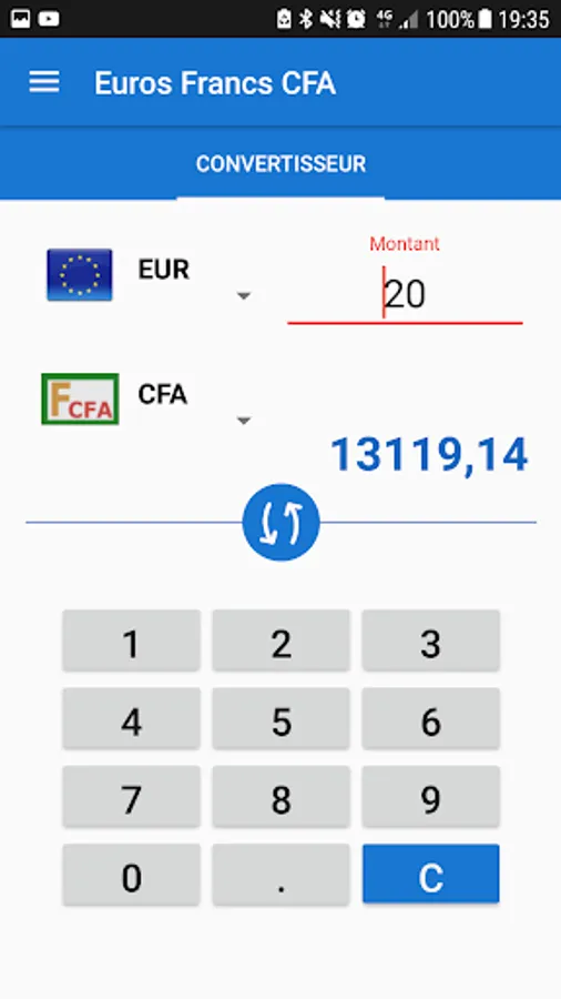 Application to convert sums to euros and CFA francs. Simple and fast.