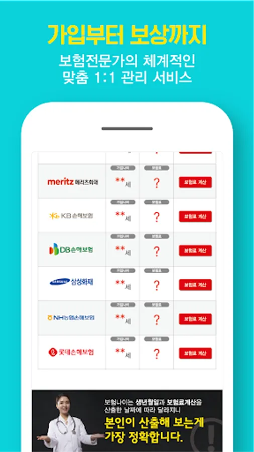 You can see the insurance products of all insurance companies in Korea at a glance and help you to design an insurance plan quickly and easily.
