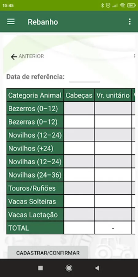 The application called Management of Costs of Dairy Activity (GERCAL) was developed in a language compatible with operating systems of mobile technologies (Android) and lends itself to: (1) recording of income, expenses, milk production and inventory goods of milk production systems; (2) estimated depreciation values of inventory assets, effective operating cost, total operating cost, total unit operating cost, gross margin, net margin, percentage share of revenue items and percentage share of components of effective operating cost. The GERCAL application was formatted to calculate costs according to the methodological proposal by Matsunaga et al. (1976), called the Total Operating Cost methodology. In this methodology, the Total Operating Cost corresponds to the sum of the Effective Operating Cost,