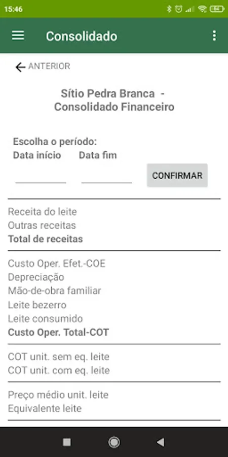 Depreciation Cost and Family Labor Cost. The items that make up the Effective Operating Cost are divided into 14 groups, namely: food, pasture rent, fuel, miscellaneous expenses, financial expenses, labor charges, energy, hormones, sales taxes and contributions, artificial insemination, - contracted work, milking, sanitation and third-party services. In addition to this information, the application allows the sending of recorded data for the purpose of, once anonymized, mass analysis with the objective of elaborating subsidiary scientific studies, among others, of public policy guidelines for the dairy sector.