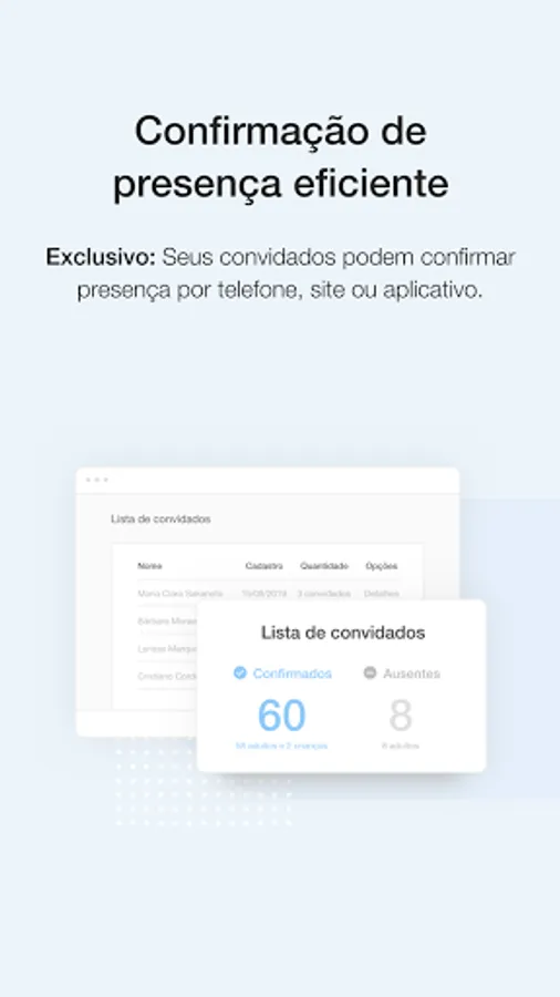 Practical, safe, intelligent and with the lowest tariff on the market (up to 3.69%). More than 50,000 gift options to customize: honeymoon quotas, household items, among others!