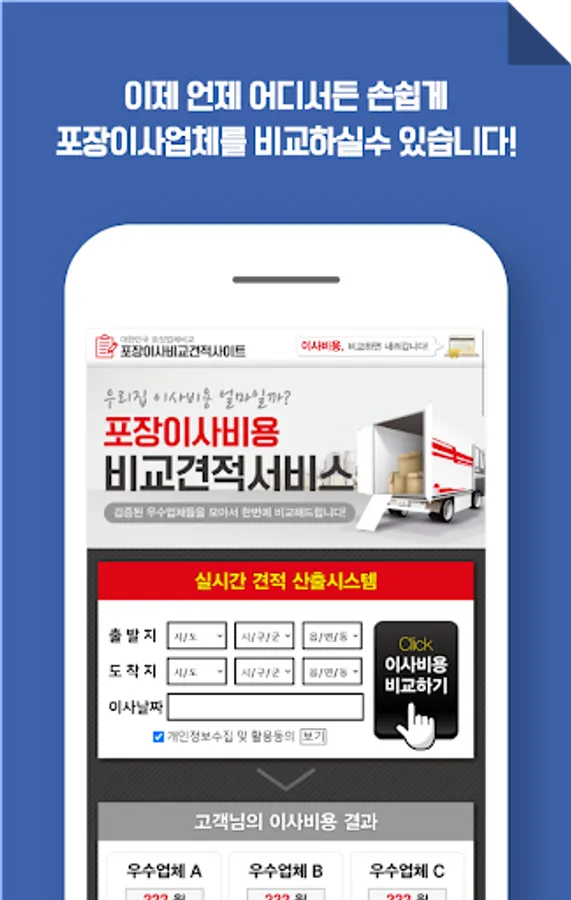 The packaging moving company comparison application recommends three companies that are good at moving companies among moving companies close to where I live, so you can easily compare from moving costs to work methods.