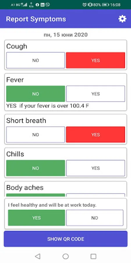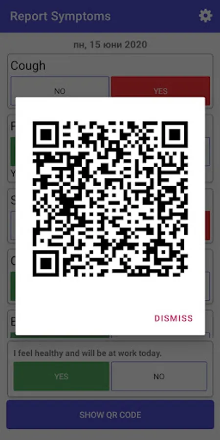 The mobile application allows employees to answer questionnaires prior to arriving at work and present their answers encoded in a QR code to the access control system terminal, which then performs additional bio-metric (for example fingerprint) and health checks (for example skin temperature measurements) before authorizing entry.
