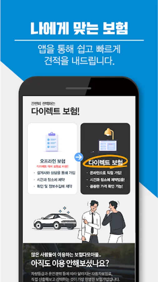 There are many people who do not know which insurance company to choose from among various insurance companies such as Samsung Fire & Marine Insurance, Hyundai Marine & Marine Insurance, Dongbu Insurance & Fire Insurance, Meritz Direct, and Kyobo AXA Direct. Being famous is not an auto insurance that suits you, so you need to make a careful decision. In this application, we will do our best to help you choose the most reasonable insurance for the insured.