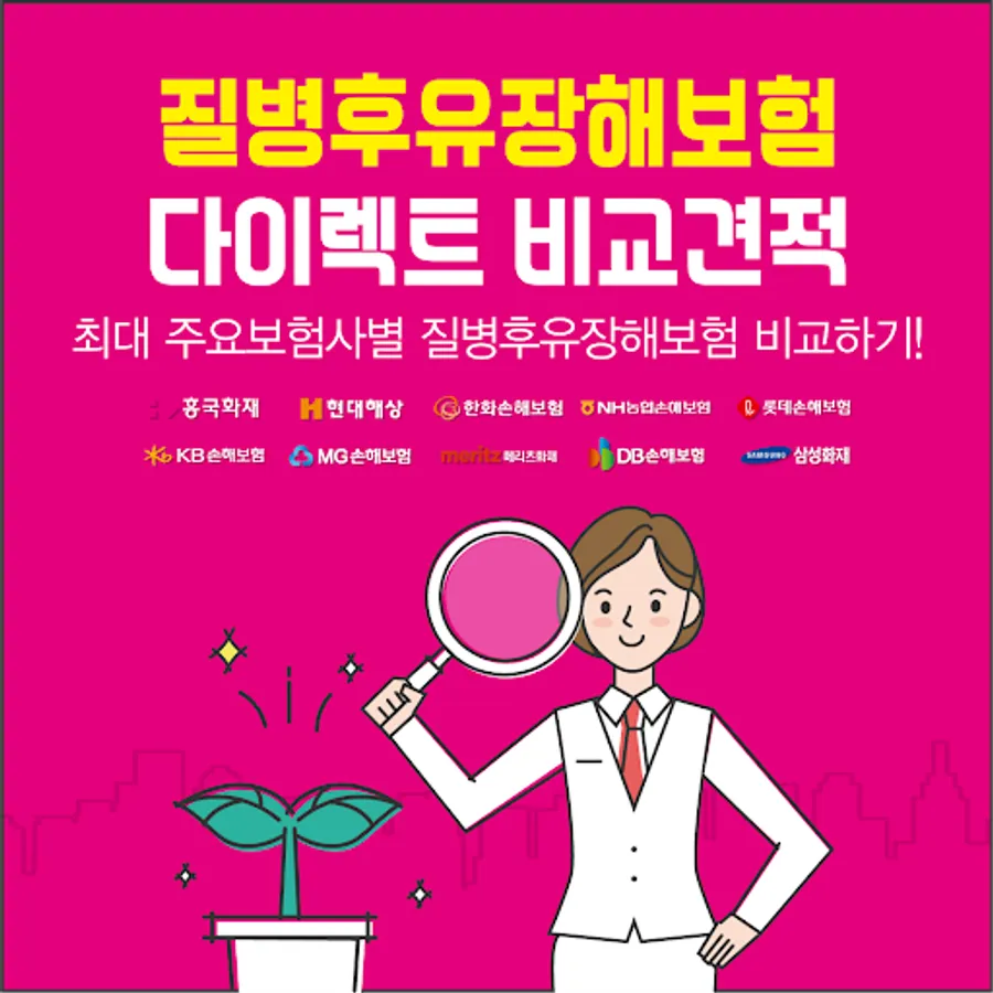 The typical insurances in the post-illness insurance that are well known to us are Hyundai Marine & Marine Disease Disability Disorder, Samsung Fire & Marine Disease Disorder, Lotte Insurance & Insurance, and Hungkuk Fire & Marine Disease Disaster Insurance, Hanwha & Marine Disposal Insurance, Nonghyup & Disease Disability Insurance There will be insurance.