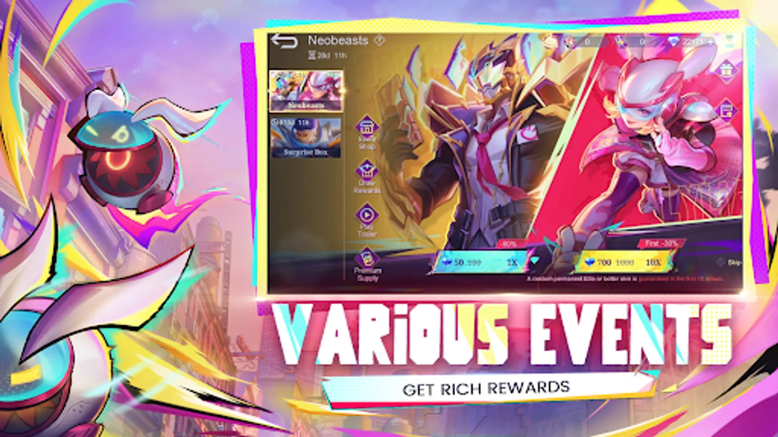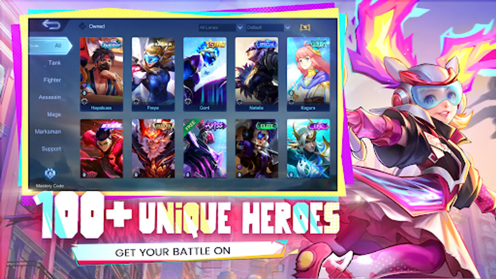 Block damage, control the enemy, and heal teammates! Choose from Tanks, Mages, Marksmen, Assassins, Supports, etc. to anchor your team and be match MVP! New heroes are constantly being released!