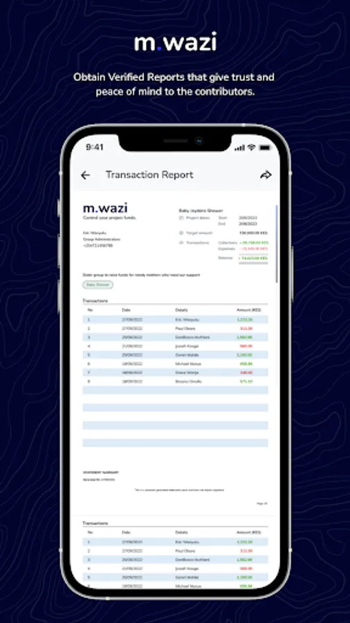 M-Wazi also offers an "M-Wazi Verified" service, providing an independent audit of your group's contributions and transactions. This gives contributors peace of mind, knowing that their well-meaning contributions are being used for their intended goals.
