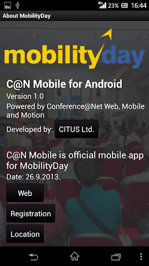 This is official Android app for Mobility Day 2013 Conference.