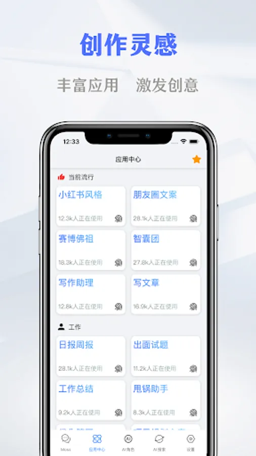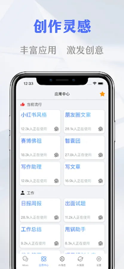 2. Application Center: The functions cover daily life, work, study, self-media creation, marketing and promotion.