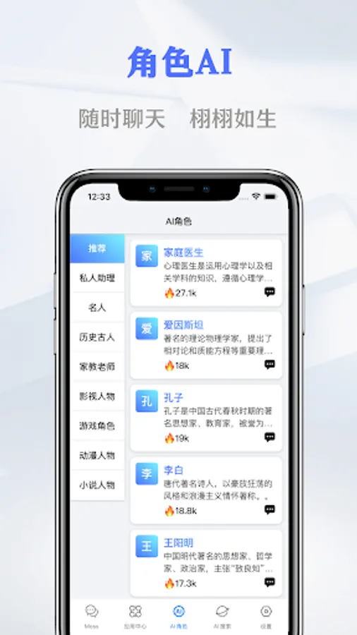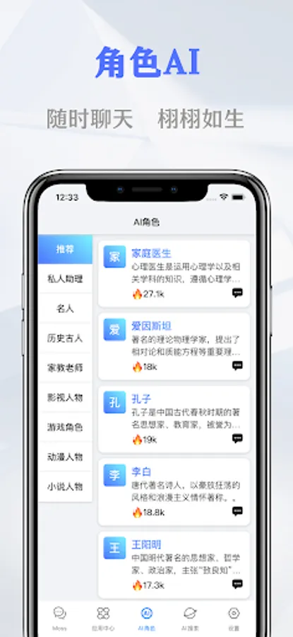 · Historical ancients: let you chat with Confucius, Li Bai, Zhuge Liang, Wang Yangming and other famous ancients in history, as if they were still alive