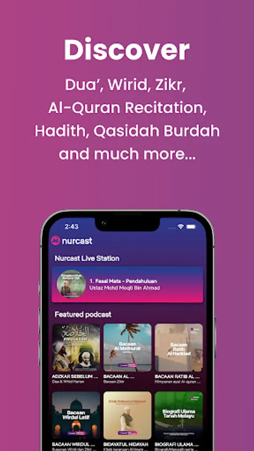 Stream live radio and play your favourite podcasts, nasyeed, dua', wirid, zikr, Al-Quran recitation and much more with Nurcast on multiple devices and on the go!