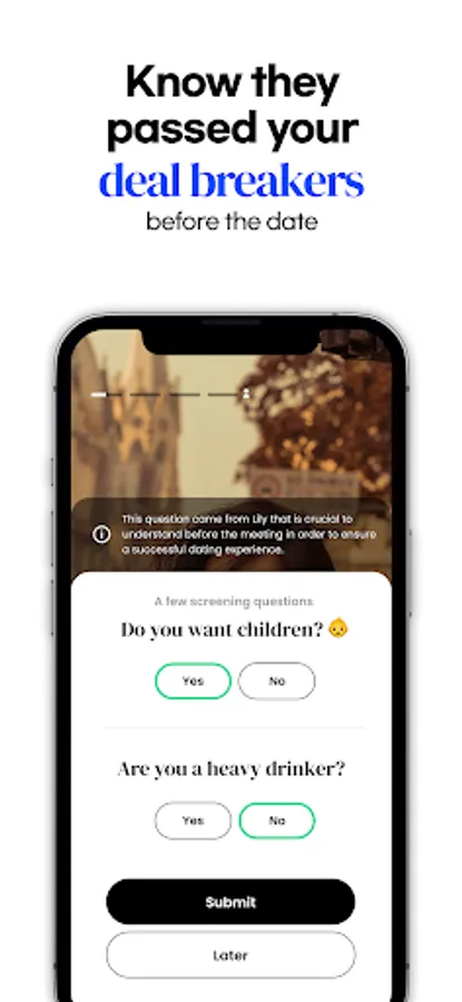 - If they swipe right back, they will be able to answer your deal breaker screener questions.