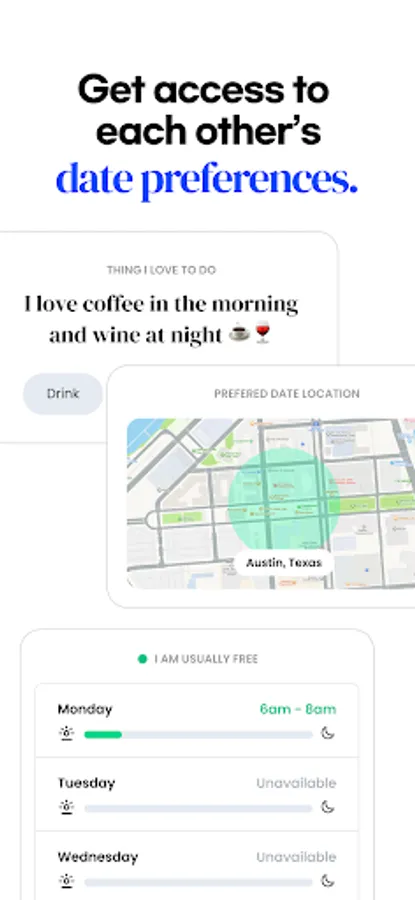 Our mission is to save you from spending endless hours chatting on dating apps and never actually meeting in real life #ghosted. So we decided to get rid of the chat completely so you can skip directly to the first date and show off your charming self in person.