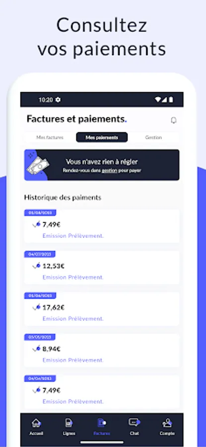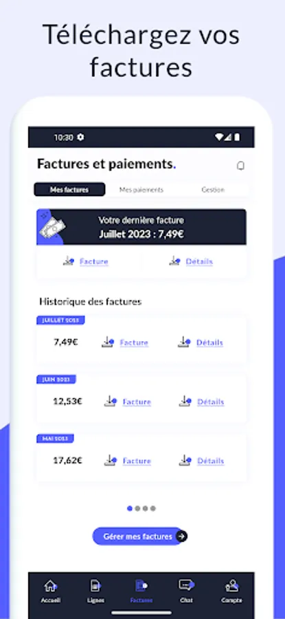 - Download your invoices (classic and detailed) for the last 2 years and see their evolution over the last 6 months