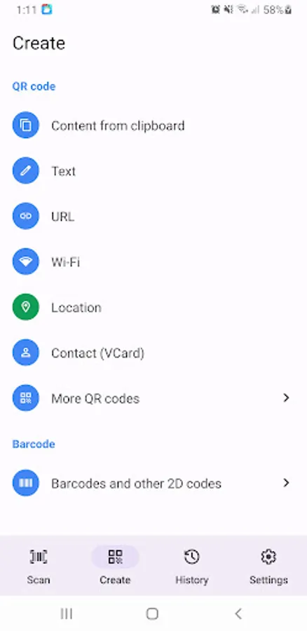 The app can make QR Codes for: