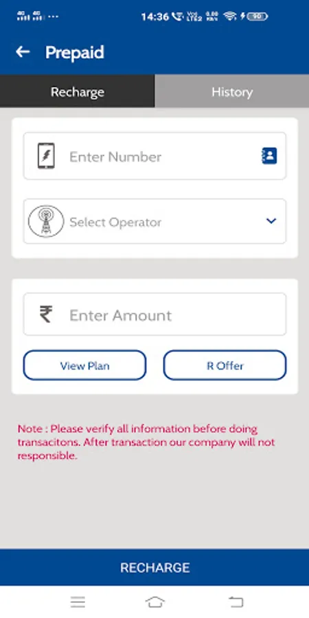 Use this app is very easy and do recharge online for prepaid,postpaid and dth recharge.