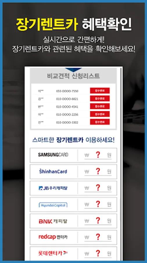 We provide a long-term rental car quote comparison in real time, so check the quotation anytime, anywhere.