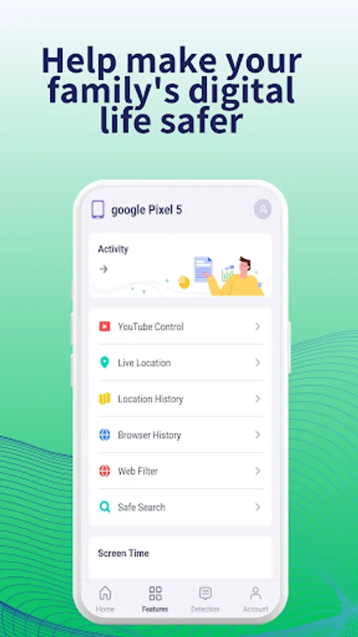 Scrnlink is Screen Time & Location Tracker parental control app, with features like kids’ screen time control & location tracking, activity report, Content Monitoring, Safe Search, website filtering, game/porn blocking.