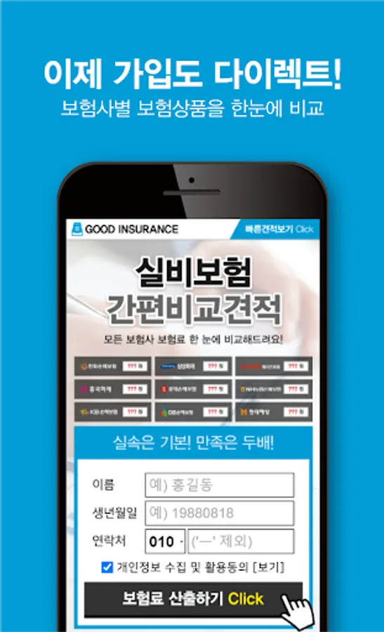 Real-time insurance prices of major insurance companies can be compared in real time.