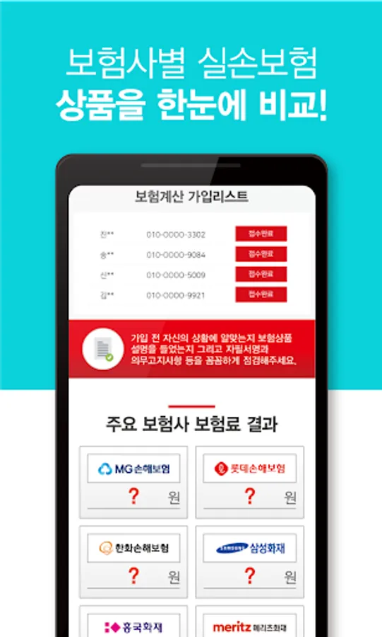 After installing the application, you can receive insurance products for each insurance company through price comparison by simply entering information.