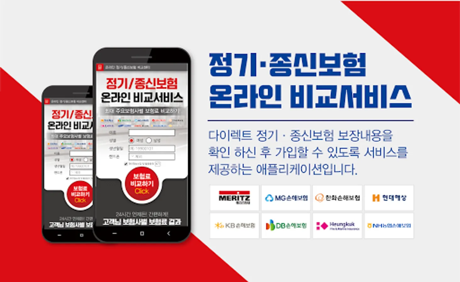 Internet services such as Meritz Regular Insurance, Samsung Life Direct Regular Insurance, Kyobo Direct Direct Insurance, Hanwha Life Insurance, Post Office Regular Insurance, Samsung Life Insurance, Post Office Life Insurance, etc. We also offer a service that recommends insurance cheap places.