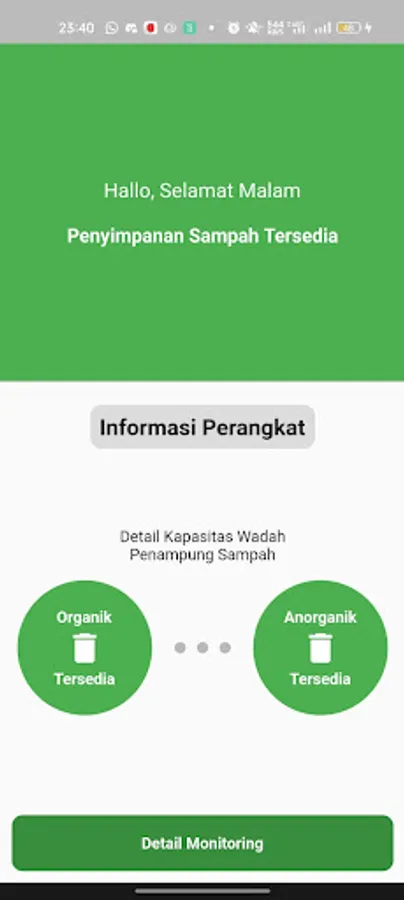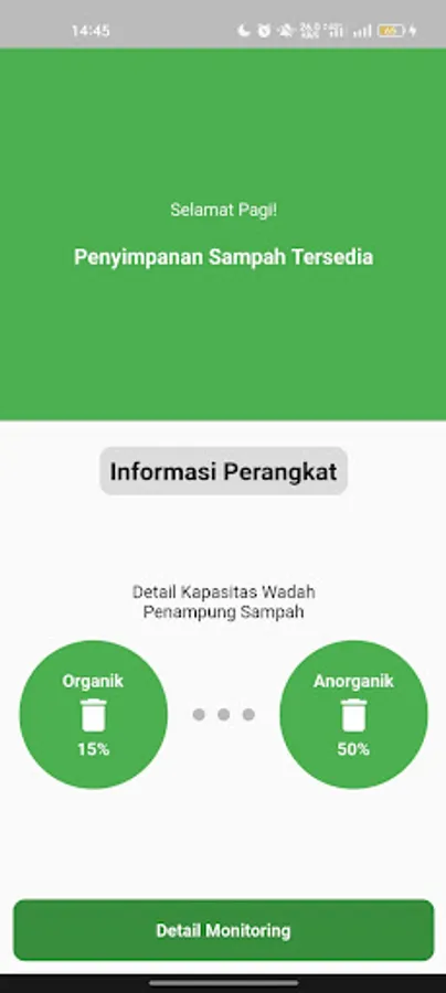 The Smart Trash Bin application is an application that is used to make it easier for cleaners to carry out their work in an office environment, because it provides notification features and full monitoring of containers and the intensity of waste disposal, which is directly connected to the Smart Trash Bin which can sort waste based on its type (Organic or Organic). Inorganic)