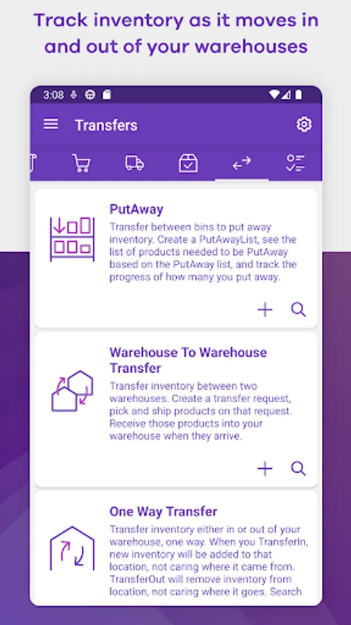 - Manage your inventory across all of your warehouses per bin location. See list of products in any specific bin or see a list of bins for any specific product. Perform quantity adjustment, physicals and bin transfers.