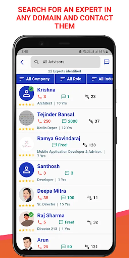Search for expertise, company, role etc.,