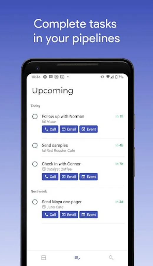 Use the mobile app while you’re away from your computer and stay confident your CRM is always up-to-date.