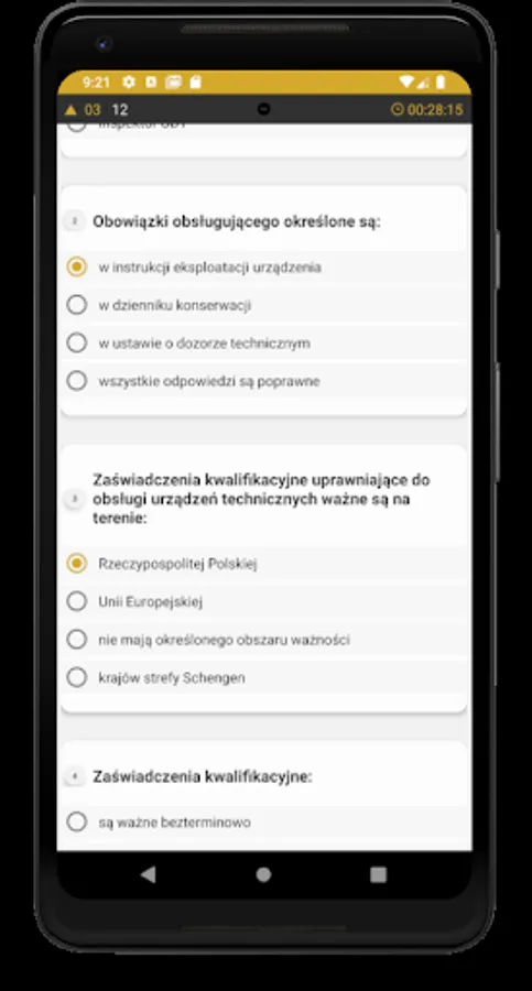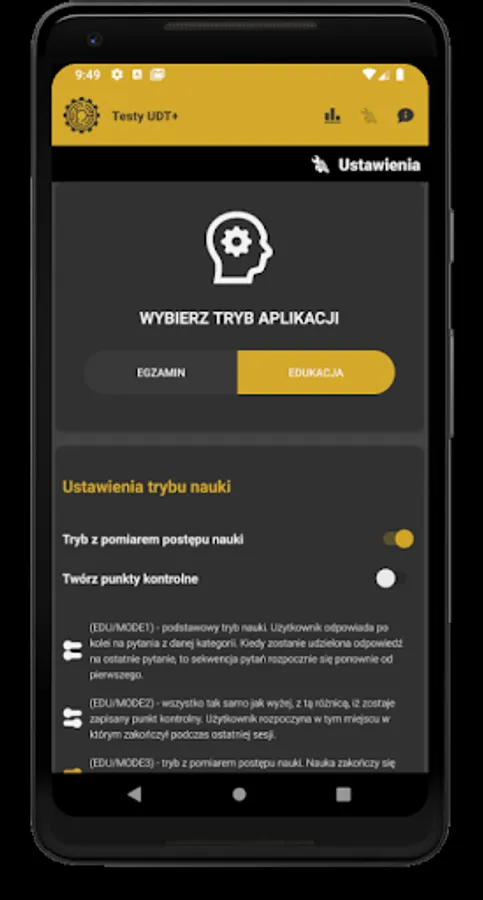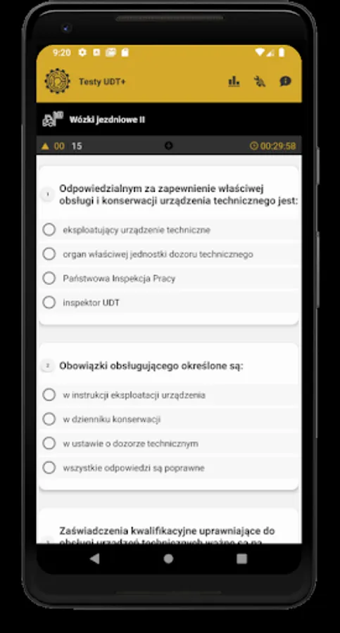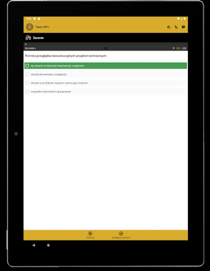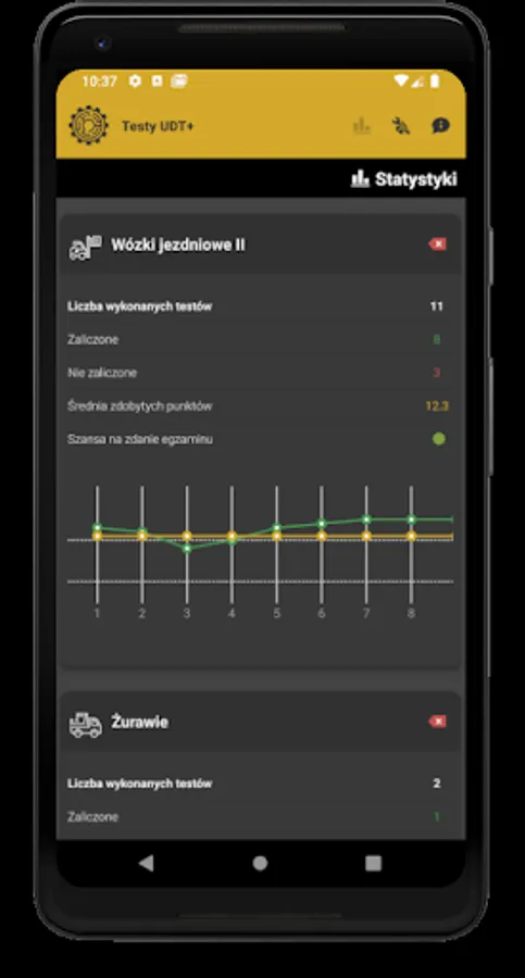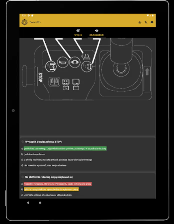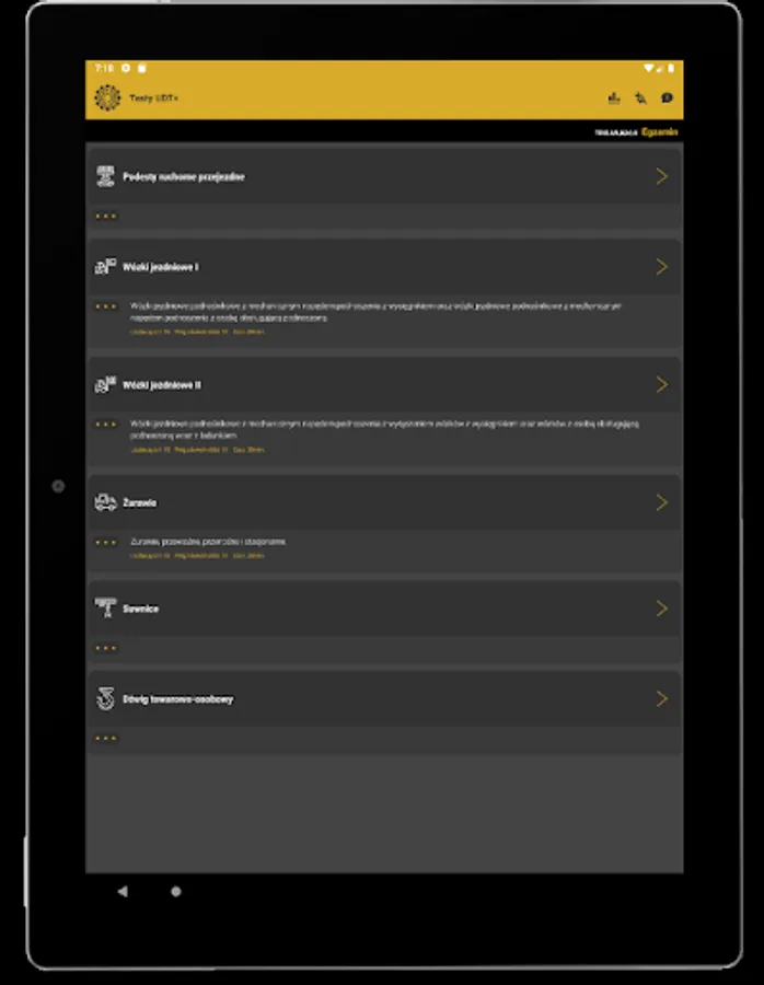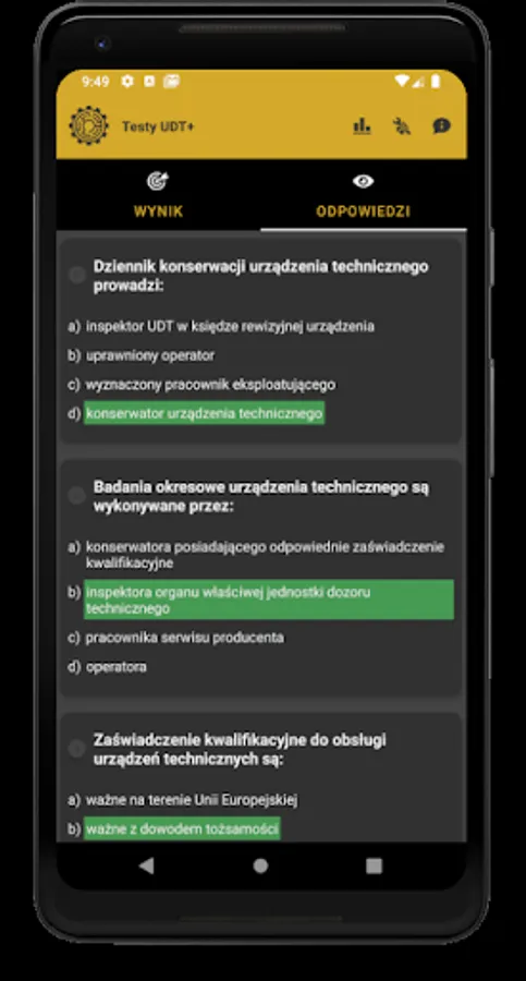 The UDT Tests application is intended mainly for people who obtain the qualifications of the Office of Technical Inspection for handling devices. The theoretical tests provided in the application are developed in accordance with the rules of the theoretical exam of the Office of Technical Inspection.