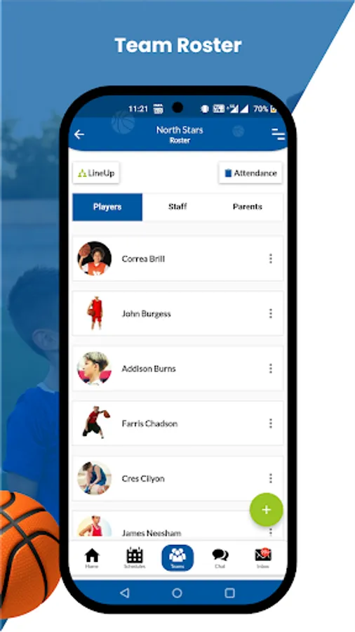 Team Schedule: Create and manage games, practices, and events with reminders and instant notifications.