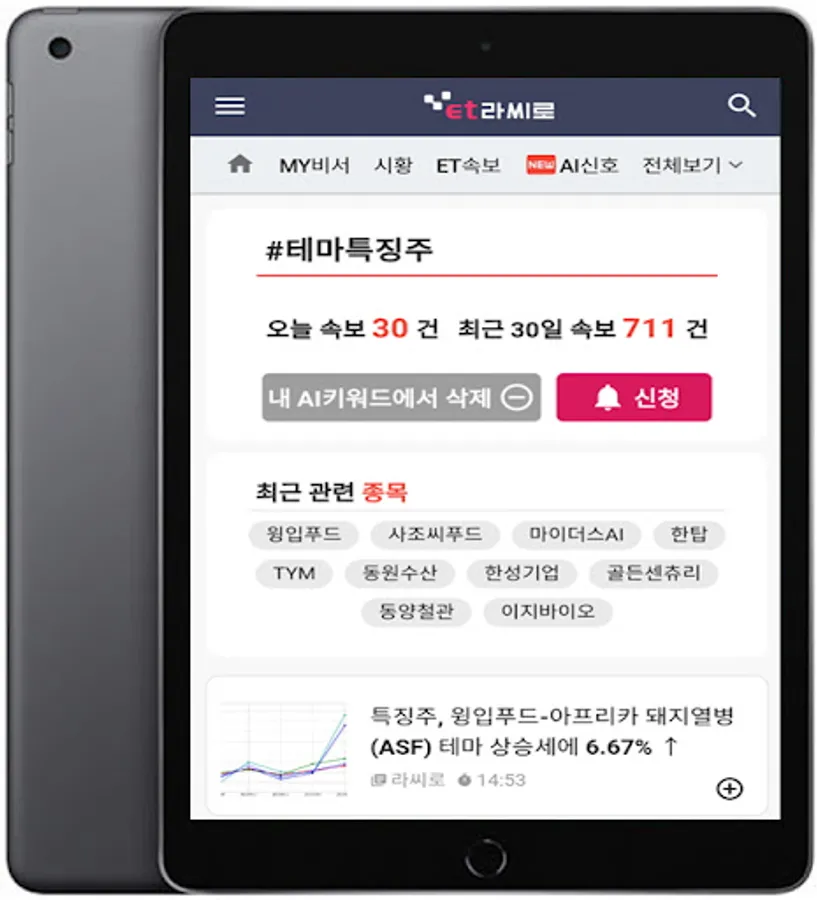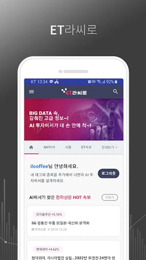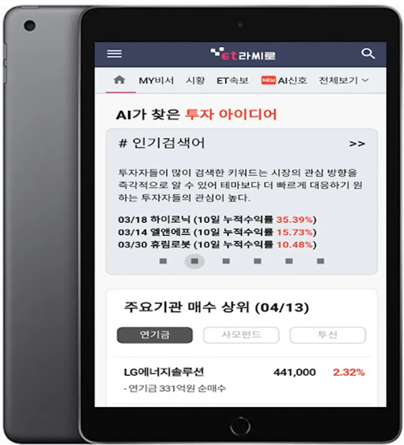 [ET LaCiro] is an AI investment assistant application jointly developed by Korea's No.1 IT specialized news portal 'Electronic Newspaper' and financial AI specialist 'Thinkful'.