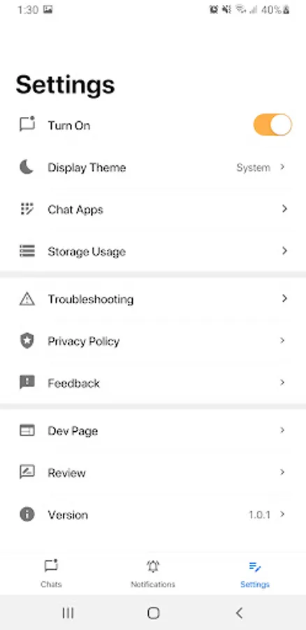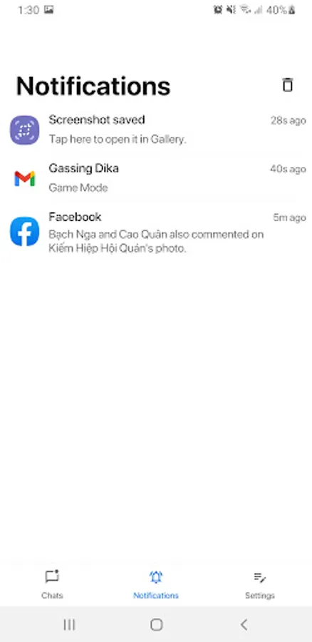 * Save notifications from CHAT applications you can read them when necessary.