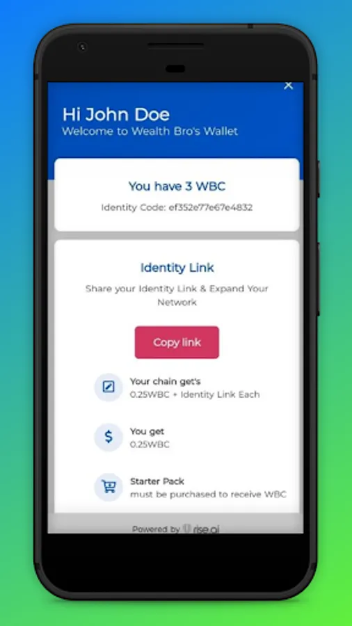 Wealth Bro's is a Decentralized Financial Network dedicated to bringing you full anonymity to your banking needs. Through our website or app you are able to exchange CAD (or local currency) for WBC (Wealth Bro's Cash) our local currency at a rate of $20CAD - 1WBC. With this you can use our many features like Monthly Profit Sharing to increase your savings. It's important to note that WBC is not volatile meaning it has all of the perks of other crypto currencies like Bitcoin & Ethereum except you don't risk your savings depreciating. We will never promise you to get rich over night but with Wealth Bro's we offer you the chance to let your savings do more than sit around gaining 0.2-1% interest annually. We offer you the chance to gain monthly at a uncapped rate fully anonymous and securely.