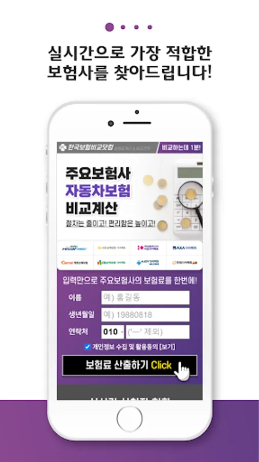 After installing the application, you can proceed with car insurance comparison estimates in real time by simply entering information.