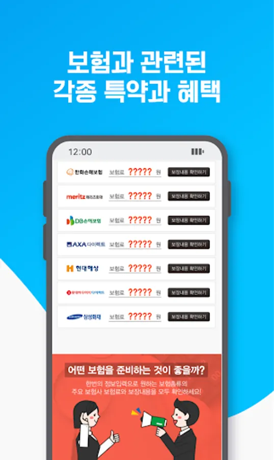 Car insurance price comparison for each of the numerous insurance products of major insurance companies, subscription information filled with complex and difficult insurance terms, and insurance contents, you can easily compare the price of auto insurance through the application.