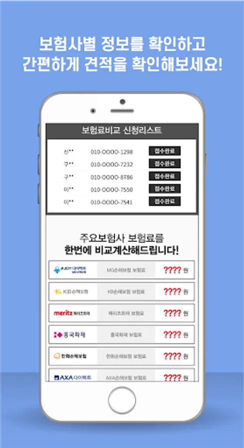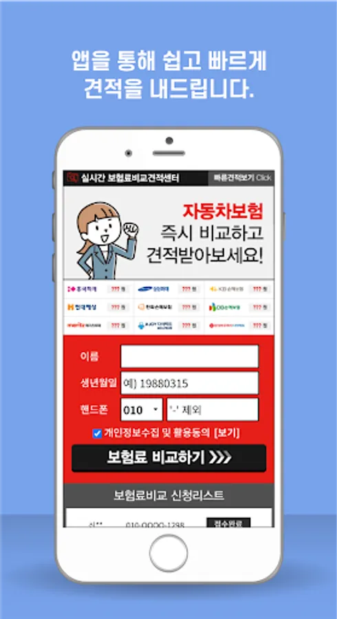 After installing the application, you can proceed with car insurance comparison estimates in real time by simply entering information.