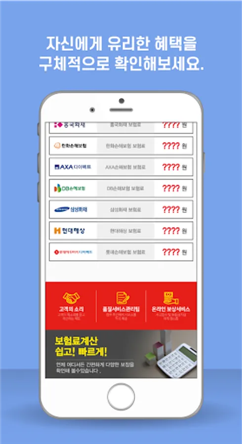 You can compare and analyze auto insurance products and prices of major domestic insurance companies at a glance.