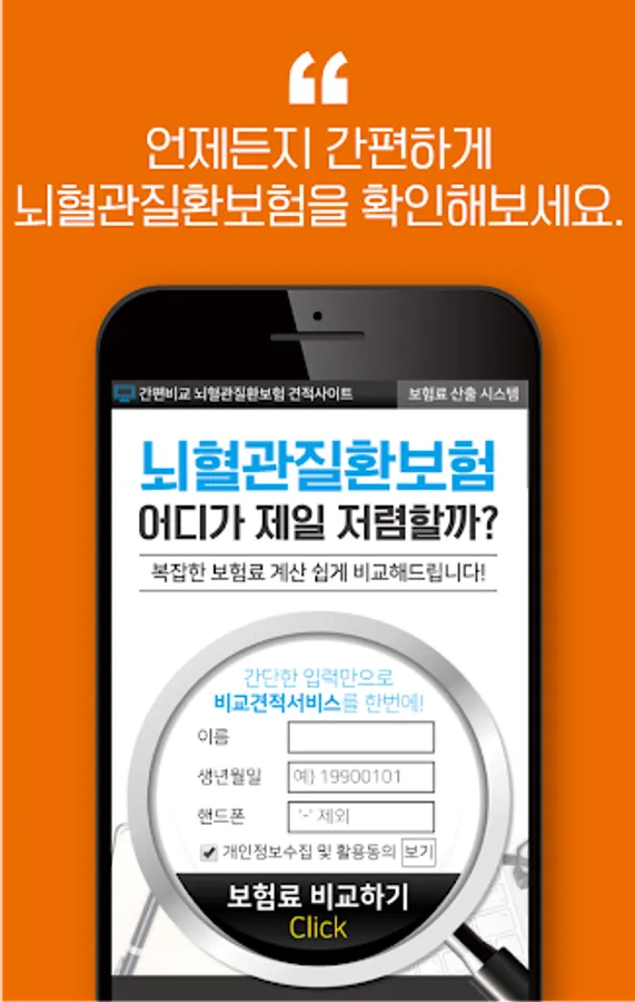 In order to solve these difficulties, the Cerebral Vascular Disease Insurance Comparison Estimate Site application is providing services that can help you sign up by comparing and calculating cerebrovascular disease insurance easily and conveniently.