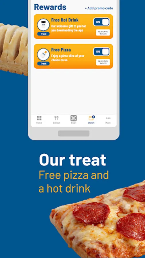 Easy, just download the app for FREE to get in on the action. In your app you’ll get 6 different stamp cards, one for each product category - from sandwiches to sweet treats. Each time you buy a product in a shop or through Click + Collect, you get a stamp. Collect 9 stamps in a category, and the 10th item you choose in that category will be on us.