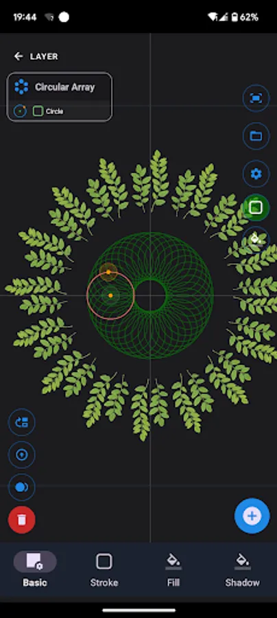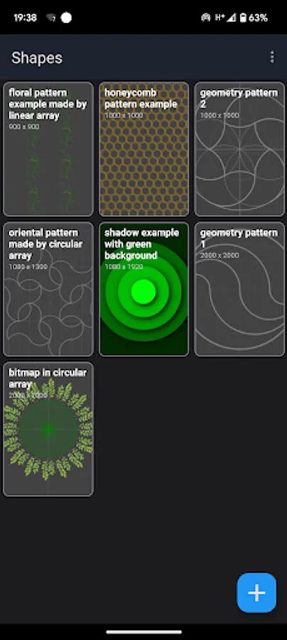 - formation of arrays of shapes (circular array, linear array, reflection),