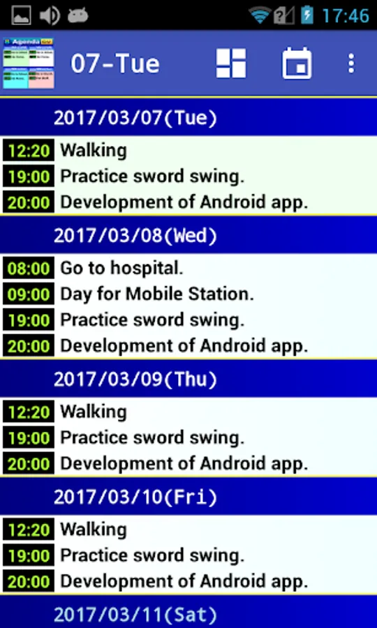Simply shows google calendar for 8 days. Free and No advertisement.